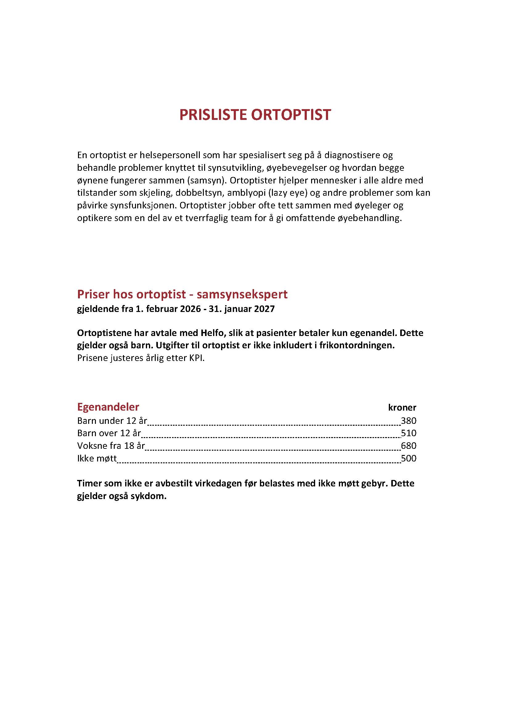 Dersom du har time ved Bislett Øyelegesenter skal du ikke møte: